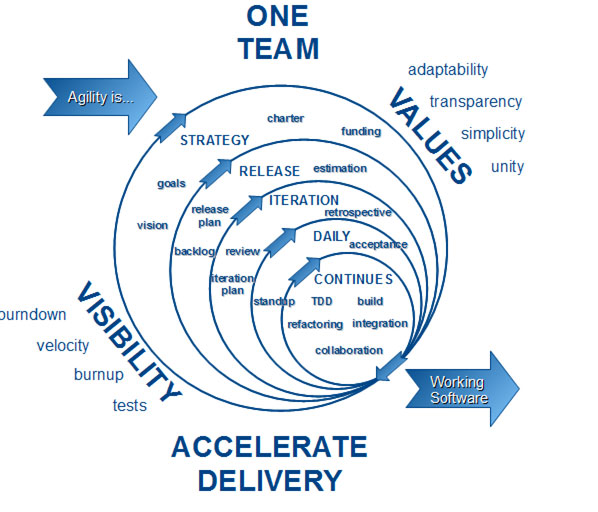 Agile development centers around short “sprints” where developers race to fix bugs and write working software within a span of anywhere between 2 to 4 weeks. Agile is most often talked about in terms of modern Web 2.0 applications where we see frequent updates and changes to code as feature sets are enhanced and new functionality is added at a rapid pace. This methodology is typically seen as the opposite of the waterfall process where development and management follows a sequential process. In waterfall projects, progress is seen as cascading sequentially through the phases of conception, initiation, analysis, design, development and testing.